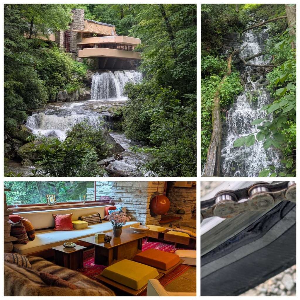 Highlight of the day was obviously my trip to Frank Lloyd Wright’s Fallingwater but then everything started going downhill. I got a flat on my front tire and fixed it, but then after a nice ride through lots of waterfalls I arrived in town and got a flat on my back tire 2 blocks from a bike shop (that was unfortunately closed). Fixed it and started onwards to my original stop for the night before I got another flat and realized that my tire wall had actually busted. I was out of patches and out of tubes and very unsure about my bike making it another ten miles, so back to Connellsville I went since I knew there was a bike shop here. Found a cute B&B for the night and life is good. You never know what’s going to happen on a bike trip and it’s best to roll with the punches. It’ll be a long day of riding tomorrow after the bike shop opens at 11am, but for now I’m going to enjoy the cozy, lazy morning of sleeping in. π² 34 miles