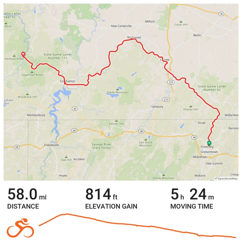 Day 5: Frostburg, MD to Ohiopyle, PA – GAP – 58 miles