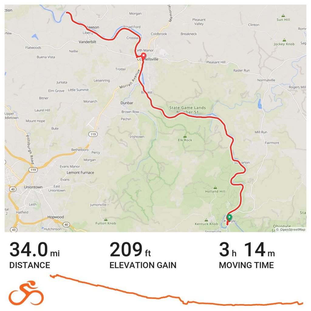 Day 6: Ohiopyle, PA to Connellsville, PA – GAP – 34 miles