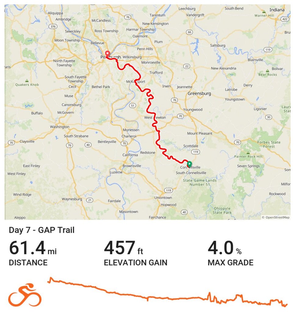 Day 7: Connellsville, PA to Pittsburgh, PA – GAP – 61 miles