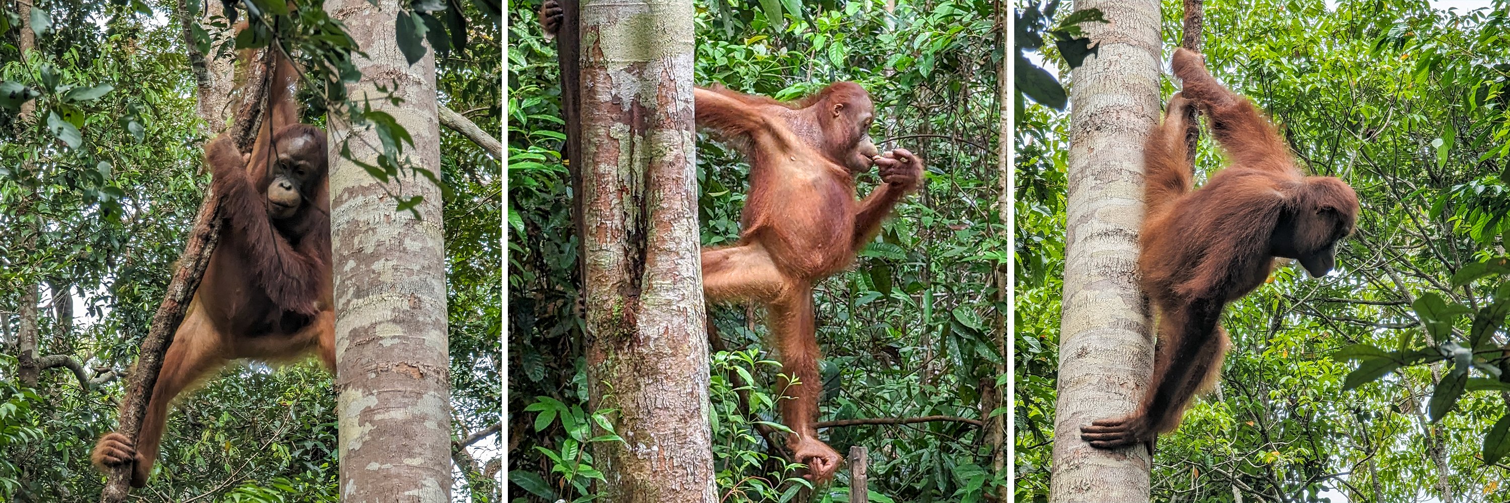 Many of the female orangutans arrived with babies and toddlers in tow. The younger ones were still learning how to move through the trees and it was fun to watch their moms reach out and grab them when they got stuck.