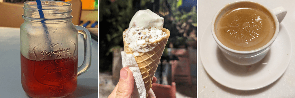 Panaji was hot and I was mostly thinking about cooling down whenever I stopped for refreshments. A tiny shop across my hotel was selling these kokum coolers which were sweet and tangy. An Amul ice cream shop was a quick stop for me to escape a rainstorm. And, of course, the only hot item on here is a masala chai. I could only really drink these in the morning, because by the afternoon it was too hot.
