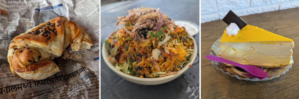 best chocolate croissant in Arambol, delicious vegetarian biryani, mango cheesecake