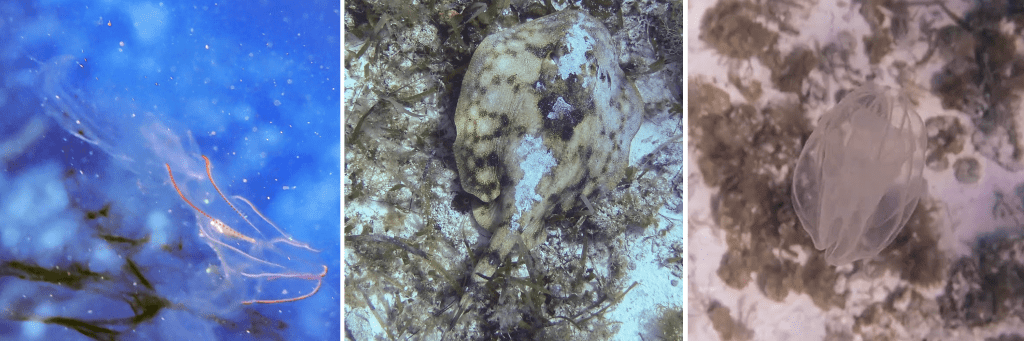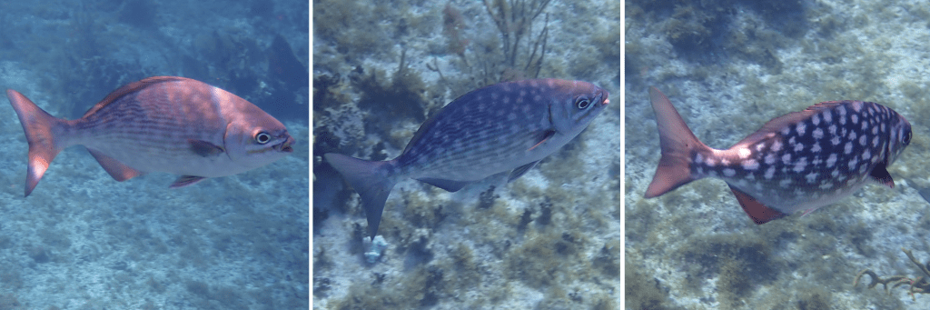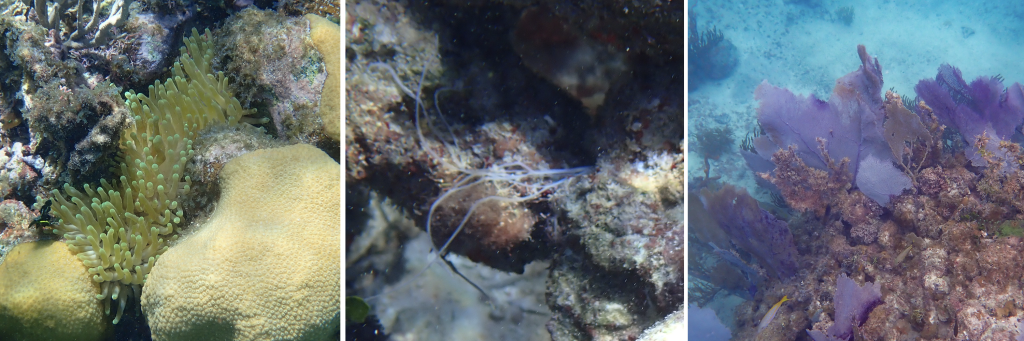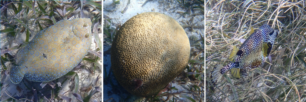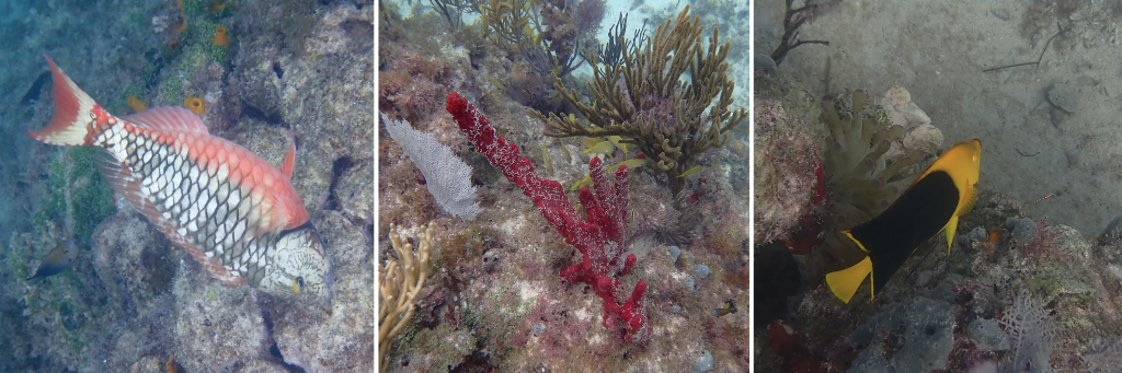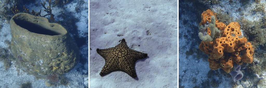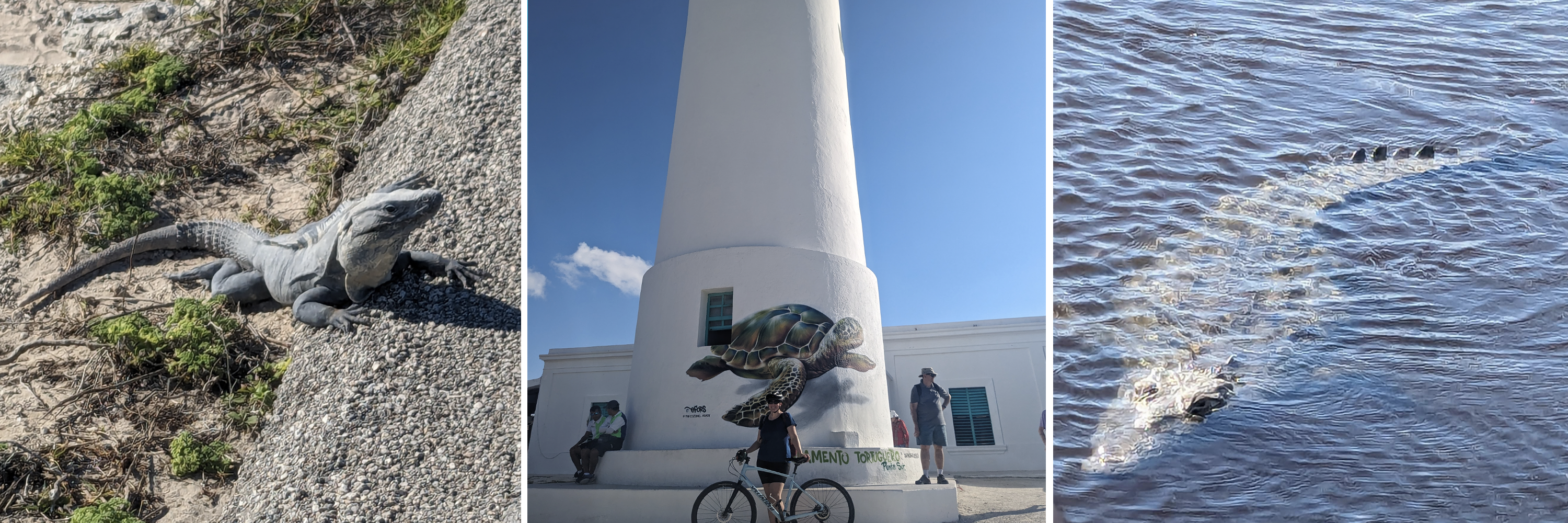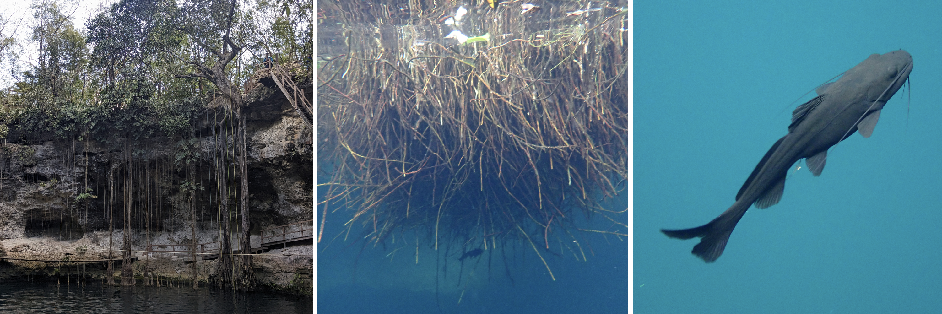 flamingos, me and Lucy in our kayak next to mangroves, view from swimming in the ojo de agua