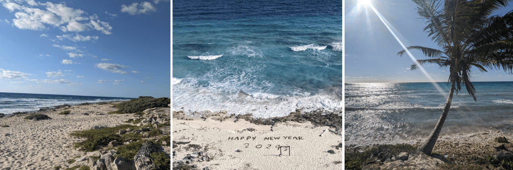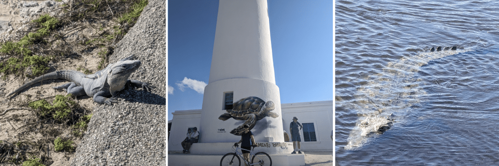On one of my last weekends in Mérida, another Spanish student Lucy and I made our way out to Sisal for a kayaking experience. Our guide seated us in the front of his moto-taxi and added a trailer with 2 kayaks in the back and off we went on a long bumpy ride to La Carbonera. The water is very low in the winter months, but we still managed to see a few flamingos hanging out. We kayaked through lots and lots of mangroves and eventually came to an ojo de agua, a natural spring. The water in the ojo is freshwater, bubbling up from an underground source. Back on the main lagoon, the water is brackish because it mixes with saltwater from the ocean. When the rainy season comes, the water gets higher and a lot more flamingos come to feed. On the way back to Sisal, we stopped and went for a swim in the ocean at a beautiful pristine beach.