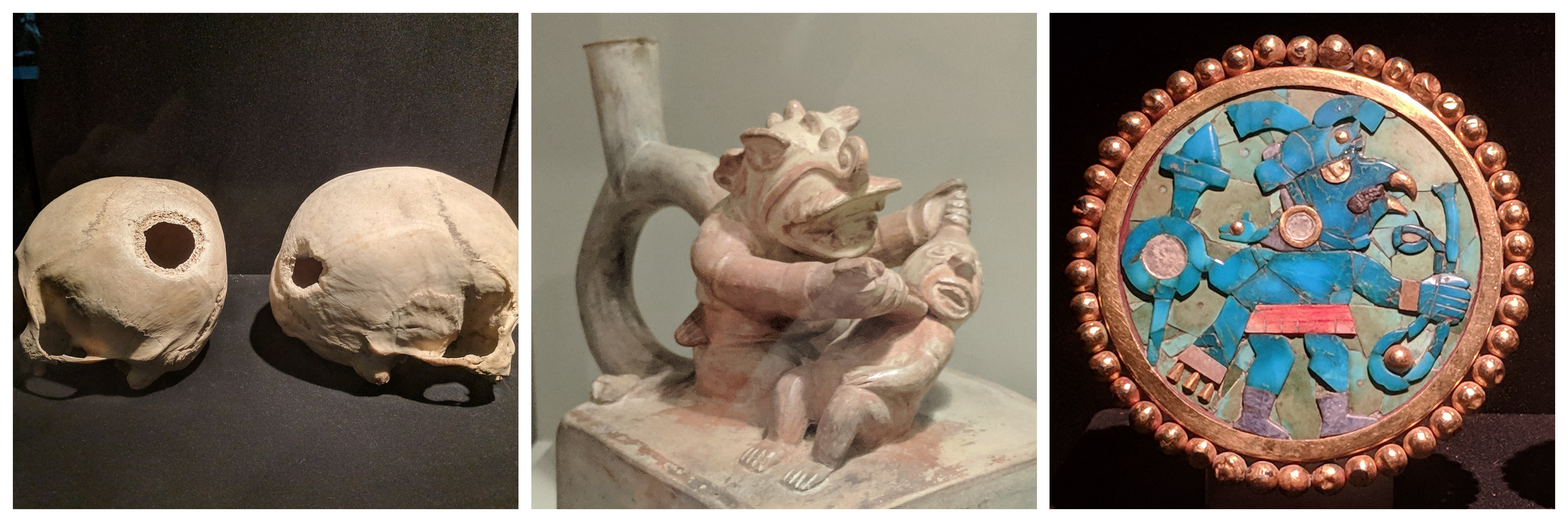 Other highlights included skulls that were opened up in Inca times. This brain surgery would have been performed to help hematomas or remove parts of the skull that had been fractured in war. The skull on the left doesn’t show any bone regrowth so the person probably died from the effort. However, the one on the right shows lots of growth so that person lived quite a while after the surgery was performed.